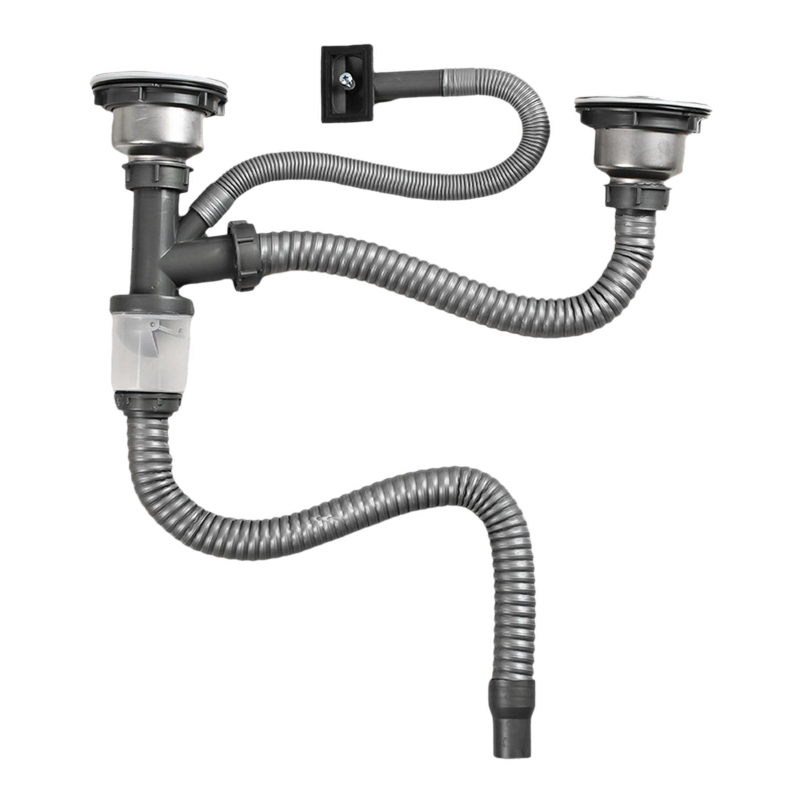 【fácil de instalar】: esta tubería de alcantarillado de doble fregadero es fácil de instalar y se puede instalar rápida y fácilmente sin pasos de instalación complicados.