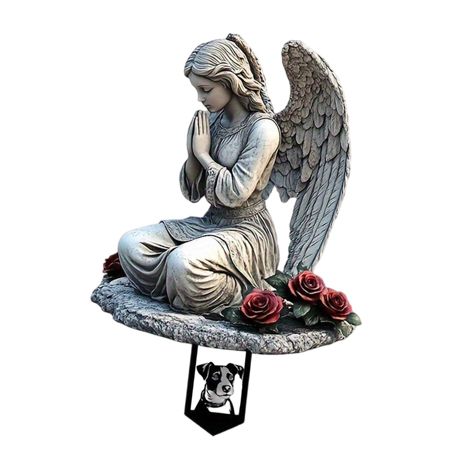 【estaca de placa conmemorativa】esta decoración de estaca de jardín de ángel conmemorativo presenta una devota niña ángel con un patrón de alas celestiales, ideal para honrar la memoria en un jardín o espacio al aire libre