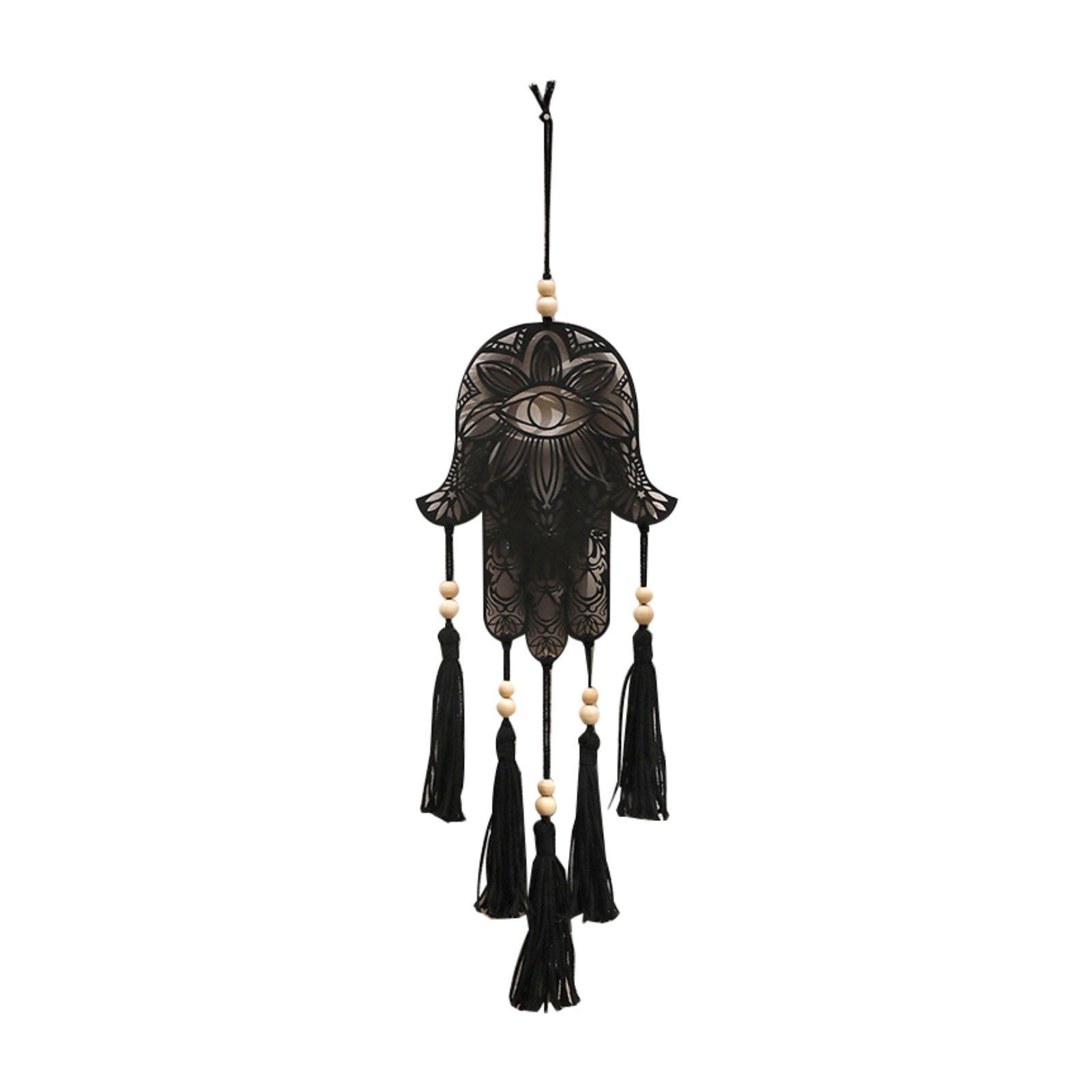 Tamaño del producto: delicado y único tapiz negro para colgar en la pared de macramé con mano de hamsa, aprox. 17 cm x 49 cm/6,69 pulgadas x 19,29 pulgadas.