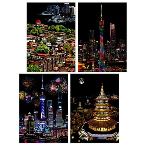 Magideal - Juego De 4 Piezas De Papel Para Rascar, Manualidades Artísticas Para Niños, Tableros De Dibujo, Hojas Negras Para Rascar Con Palos De Madera Para Jueg Estilo B | Lider Electrohogar