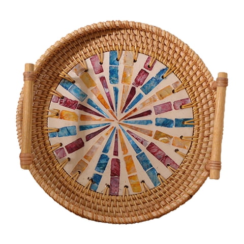 Magideal - Bandeja Decorativa De Ratán Para Servir, De Pan, Bandeja De Té Tejida, Bandeja Organizadora Forma Forma Forma Para Desayuno, Galleta, Cocina, De , 24Cm 24X3Cm | Lider Electrohogar