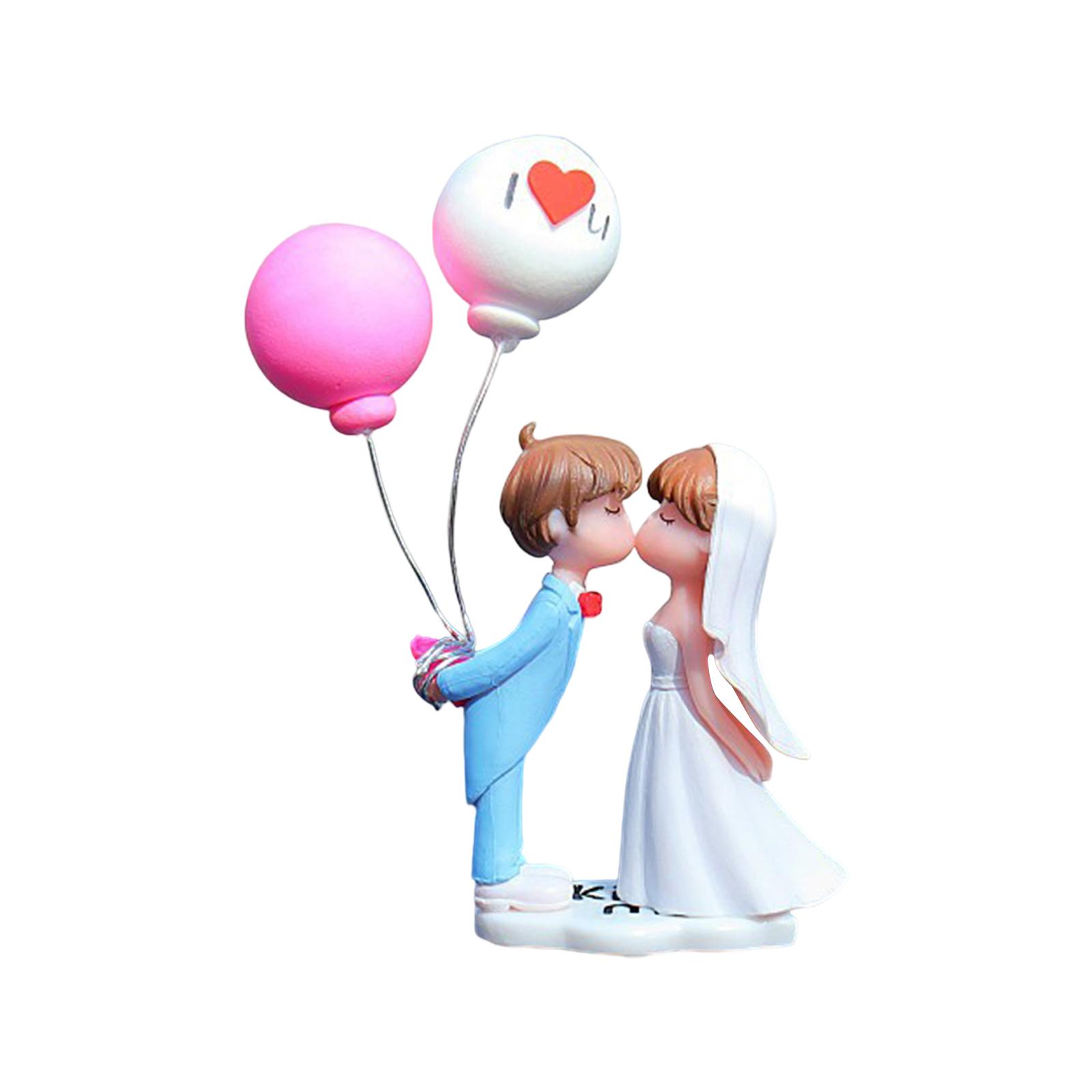 Magideal - Figura De Acción De Pareja De Dibujos Animados De Resina, Modelo De Juguete, Figurita, Adorno De Globo, Decoración De Coche, Regalo De Cumpleaños Para Azul Rosado
