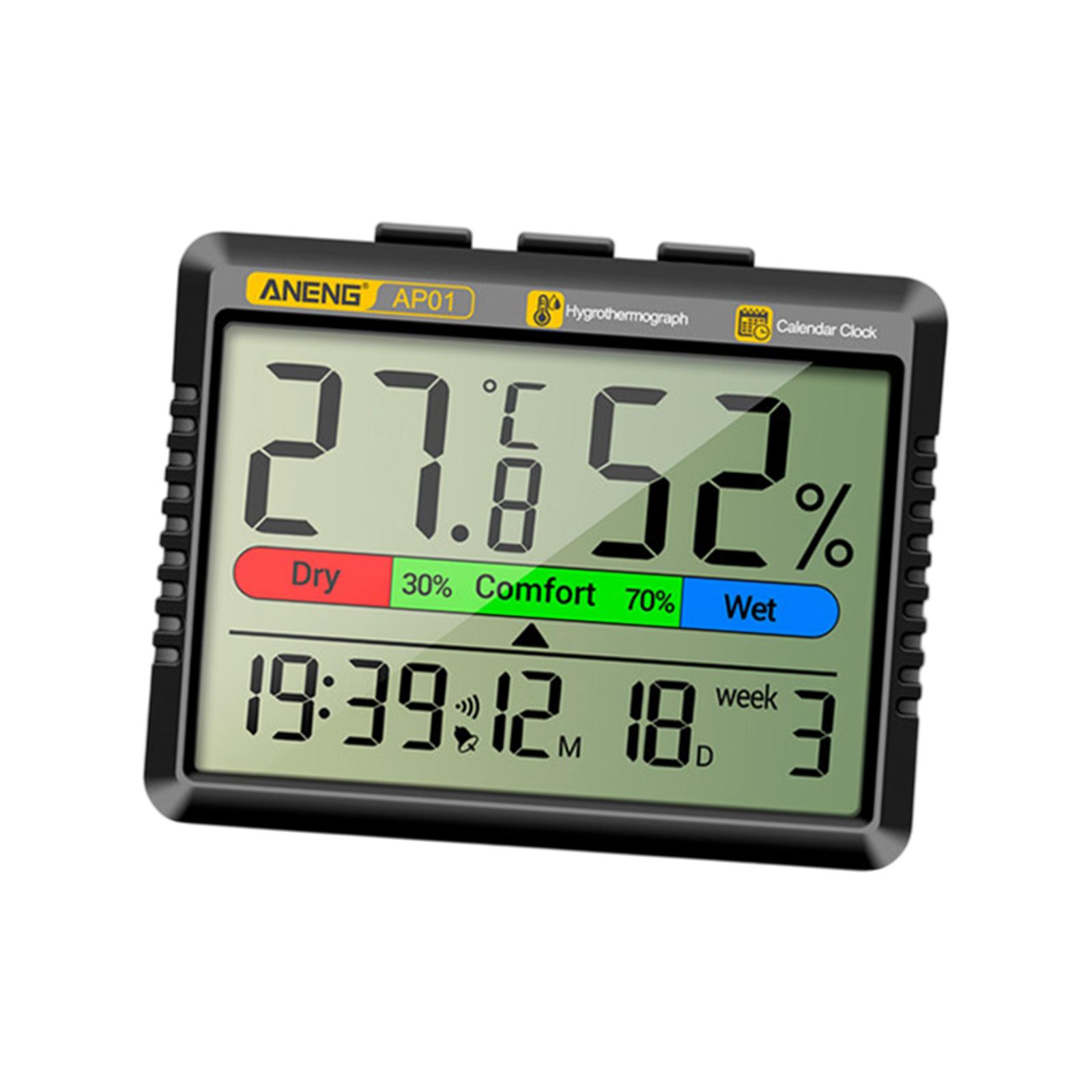 【fácil de usar】: la parte posterior del termohigrómetro multifuncional está diseñada con un soporte y un orificio, por lo que se puede montar en la pared o de forma independiente. puede ahorrar espacio en el hogar