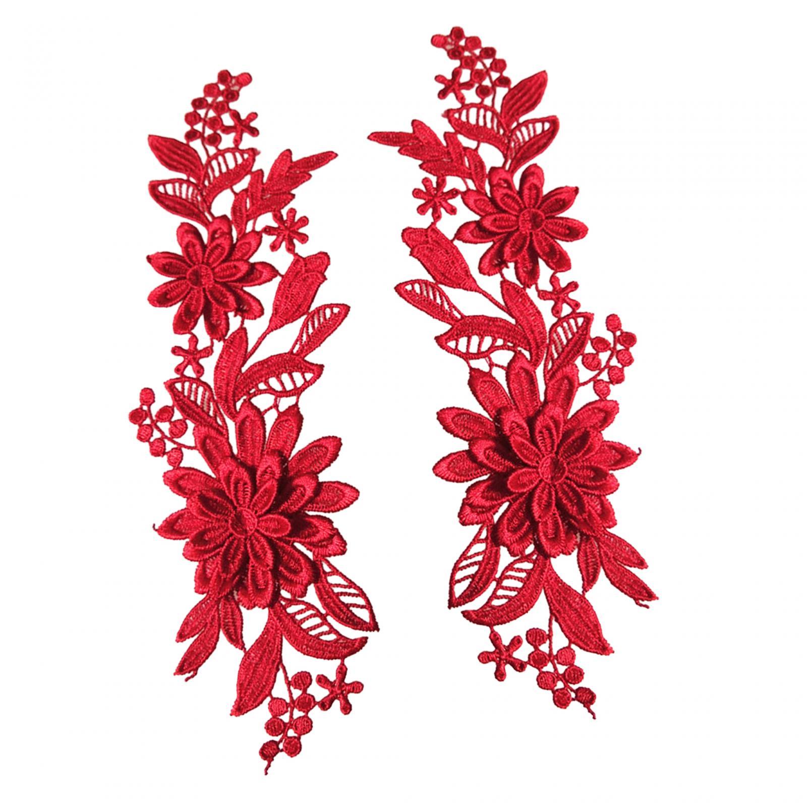 Magideal - Apliques De Encaje De 2 Piezas, Parches De Bordado Floral, Parches De Encaje, Adornos De Tela De Encaje Para La Decoración De La Artesanía De Costura Rojo