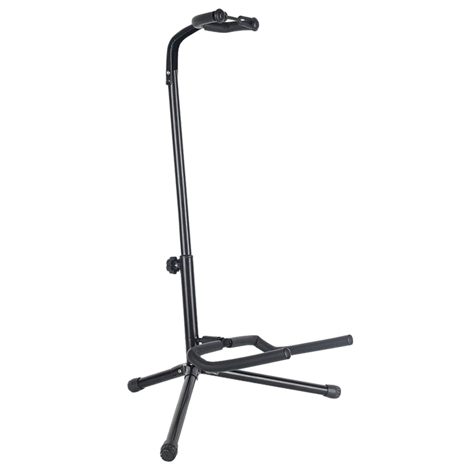 Materiales: el piso del soporte para guitarra está hecho de una estructura de metal duradera con patas de goma antideslizantes, la base de trípode resistente proporciona un soporte estable.