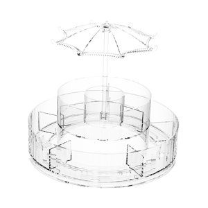 [diseño giratorio de 360°] el organizador de maquillaje cosmético presenta un diseño giratorio de 360 grados, diseño de gancho superior, puede girar objetos pequeños, lo que facilita el acceso a sus cosméticos y joyas desde cualquier ángulo.