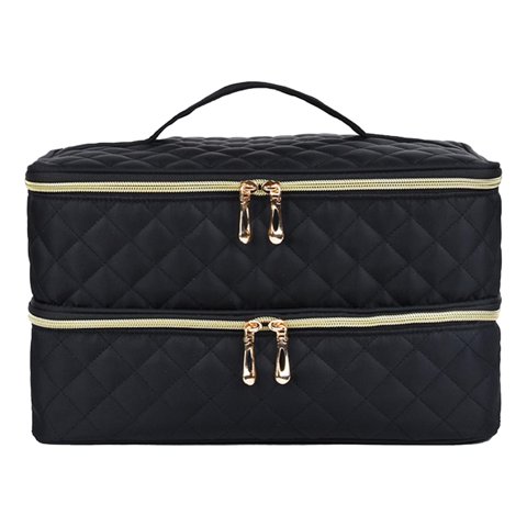 Ioensy - Bolsa De Almacenamiento De Esmalte De Uñas De Doble Capa Organizador Portátil Bolsa De Maquillaje Negro