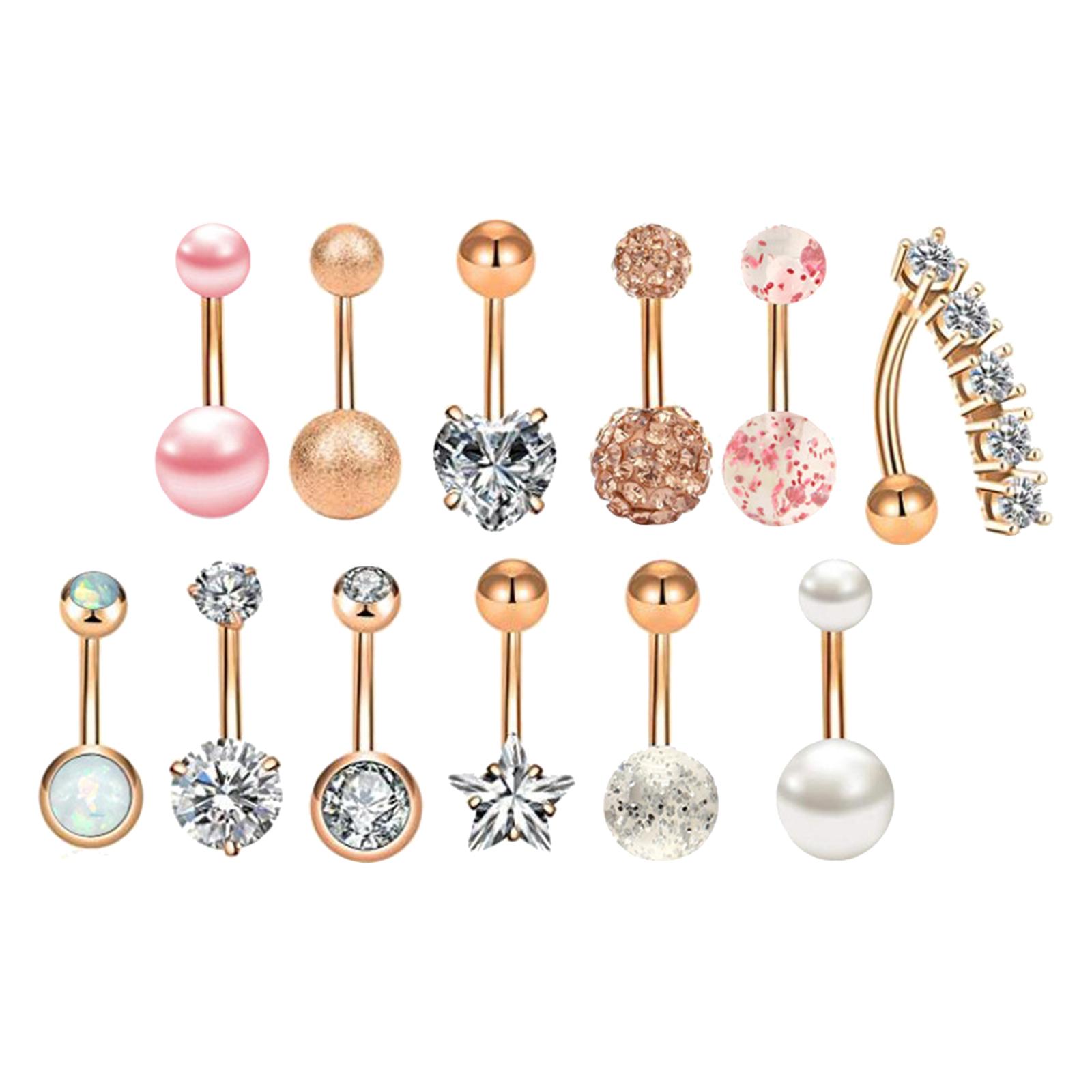 Magideal - 14 Piezas Anillos De Ombligo Piercing Joyería Cuerpo Curvado Barra Colgante Acero Inoxidable Zirconia Cúbica Adecuados Para Mujeres Y Adolescentes Regalo Uso Diario Festividades