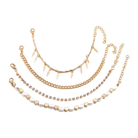 Magideal - 4 Pulseras De Tobillo Con , De Joyería De Cadena, Aleación Simple, Cadenas De Piezaza De Ajustables Colgante Elegante Tobill | Lider Electrohogar