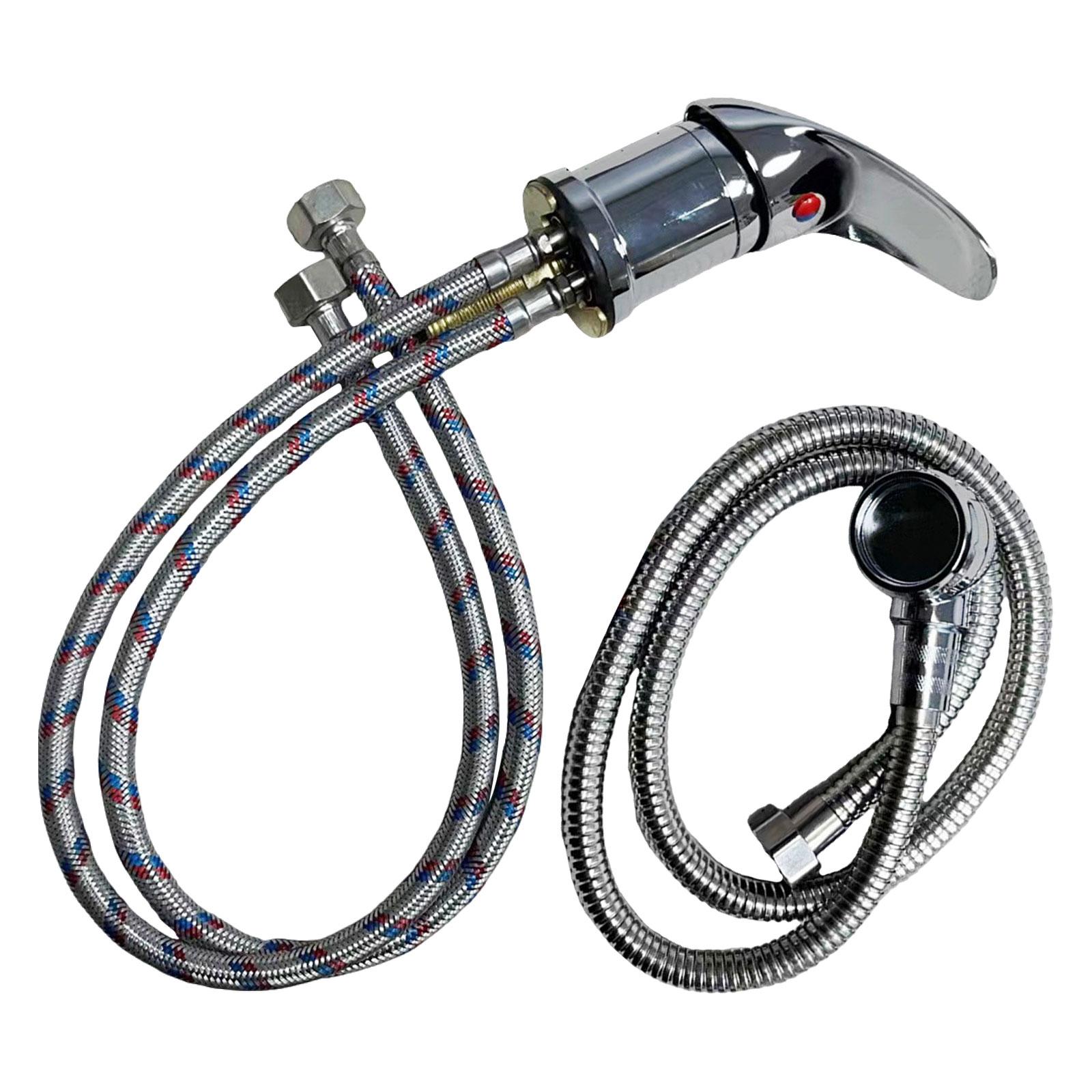 material de primera calidad: el juego de grifo para champú adopta una aleación de zinc de primera calidad y un material de acero inoxidable, resistente al desgaste, resistente y garantiza un uso prolongado.