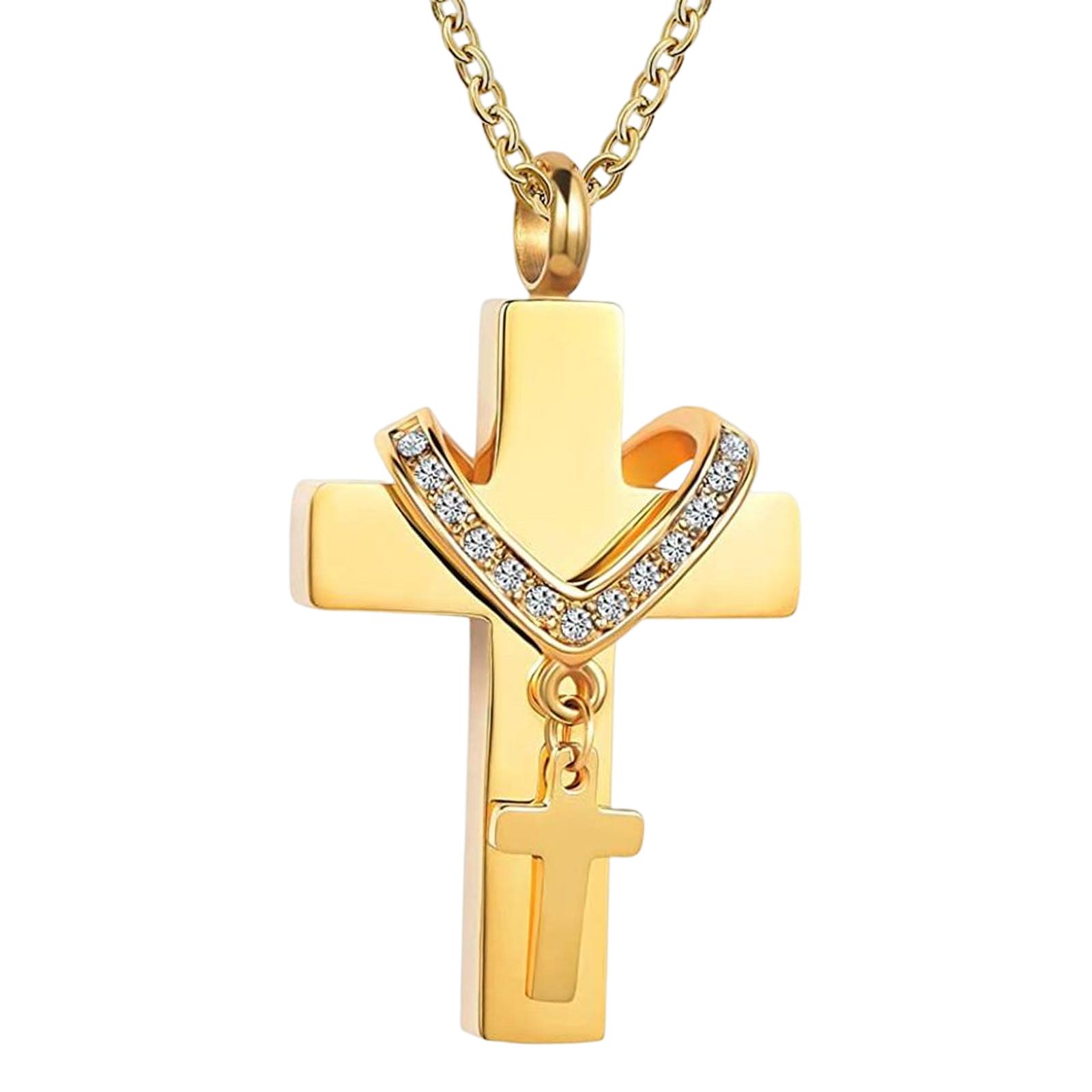 Magideal - Urna De Acero Con Colgante De Cremación De Doble Cruz, Recuerdo Conmemorativo, Joyería Clásica Para Cenizas Dorado | Lider Electrohogar