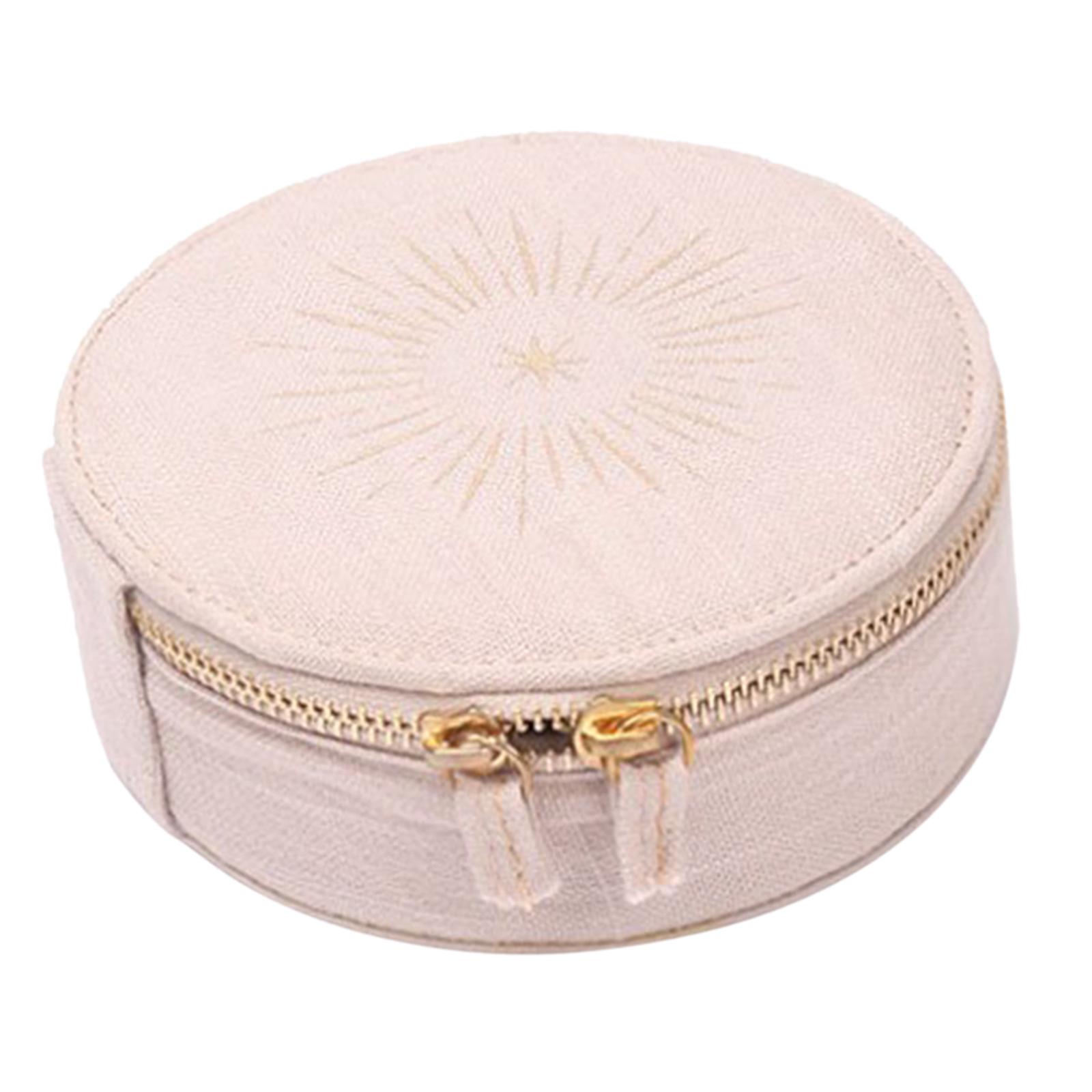 Tamaño del producto: diámetro 13 cm/5,12 pulgadas, altura 5,5 cm/2,17 pulgadas. el estuche de viaje redondo para joyas es fácil de llevar cuando se viaja.
