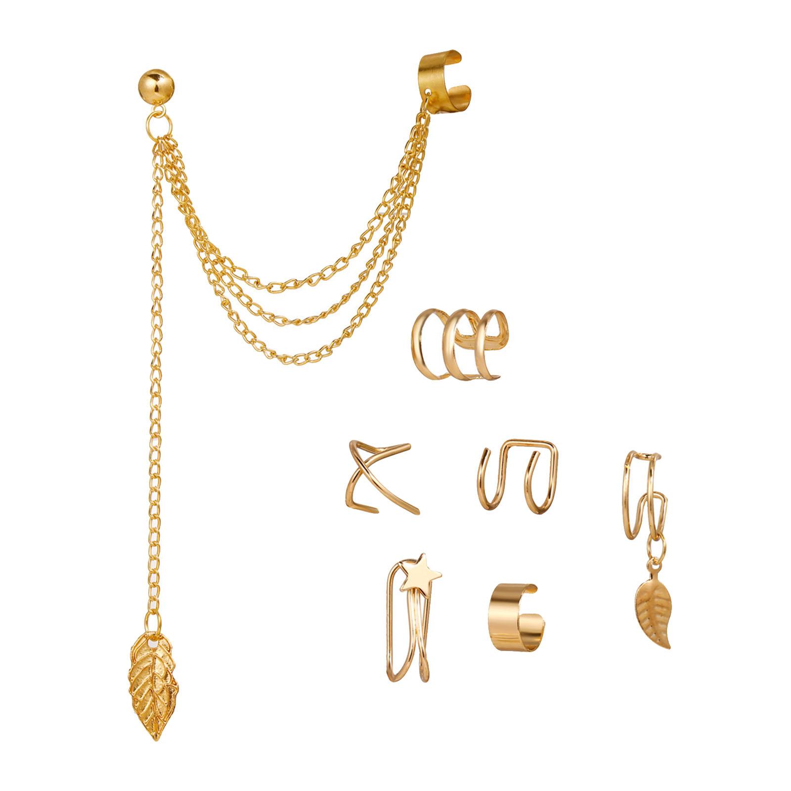 Ioensy - 7X Pendientes De Clip De Oreja Estrella De Hoja Geométrica Para Mujer Para Fiesta De Vacaciones Boda Oro | Lider Electrohogar