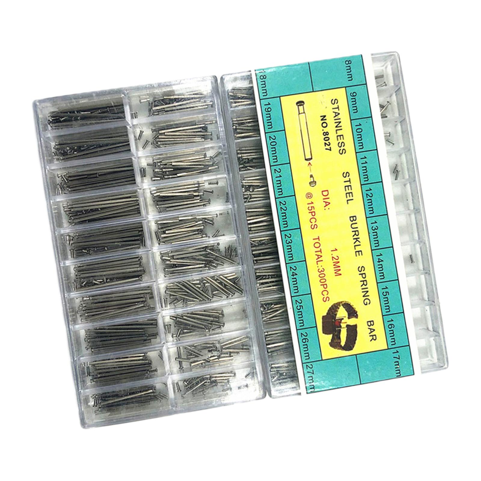 Juego de barras de resorte: el paquete incluye 300 piezas de barras de resorte con pasador de eslabón de correa de reloj, en 20 tamaños diferentes, y 15 piezas de cada tamaño, diámetro: 1,2 mm.