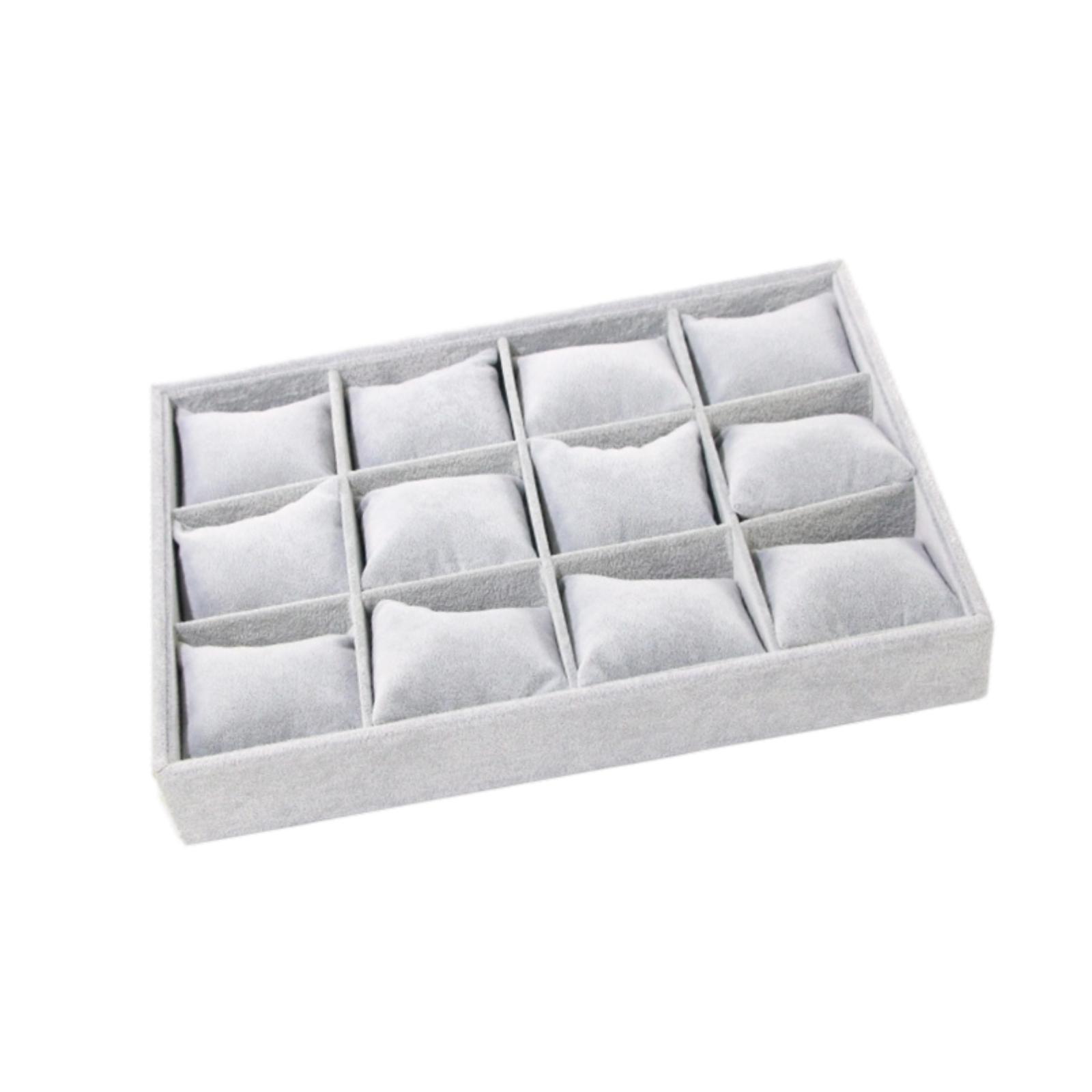dimensiones compactas: el organizador de cajones para relojes con rejilla de 12 ranuras mide 35 x 24 x 5 cm, es apilable, lo que facilita su colocación en cualquier tocador o estante sin ocupar demasiado espacio.
