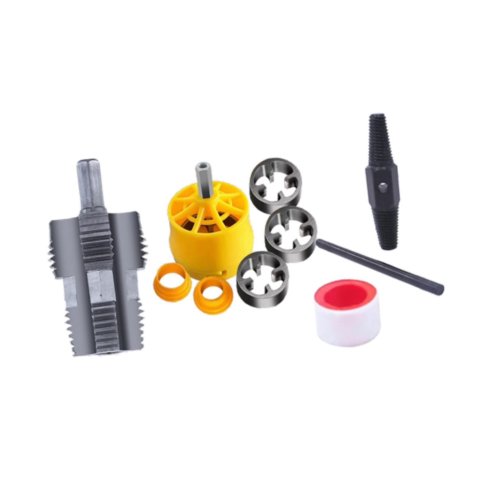 【tamaño】: 3pcs roscadores (12.7 mm/1/2 pulgada, 19.1 mm/3/4 pulgadas, 25.4 mm/1 pulgada), una junta guía de 2pcs (12.7 mm/1/2 pulgada, 19.1 mm/3/4 pulgadas); 1/2 pulgada/3/4 pulgadas abridor de agujero interno de tubería de agua