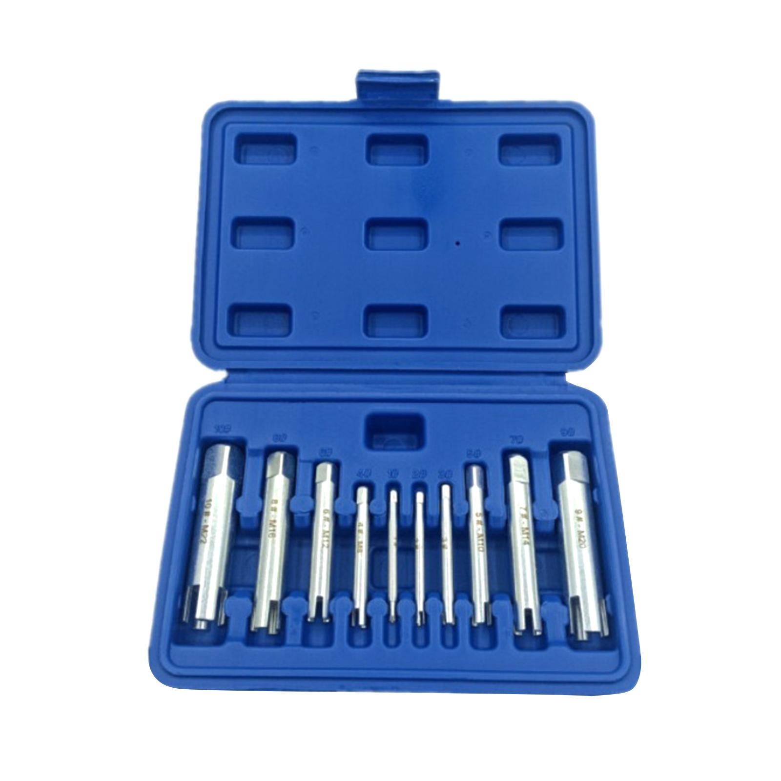 【múltiples tamaños】10 piezas de herramientas extractoras de grifos en 10 tamaños diferentes (m4/m5/m6/m8/m10/m12/m14/m16/m20/m22), con cada tamaño claramente marcado en la superficie de la herramienta para una fácil identificación.