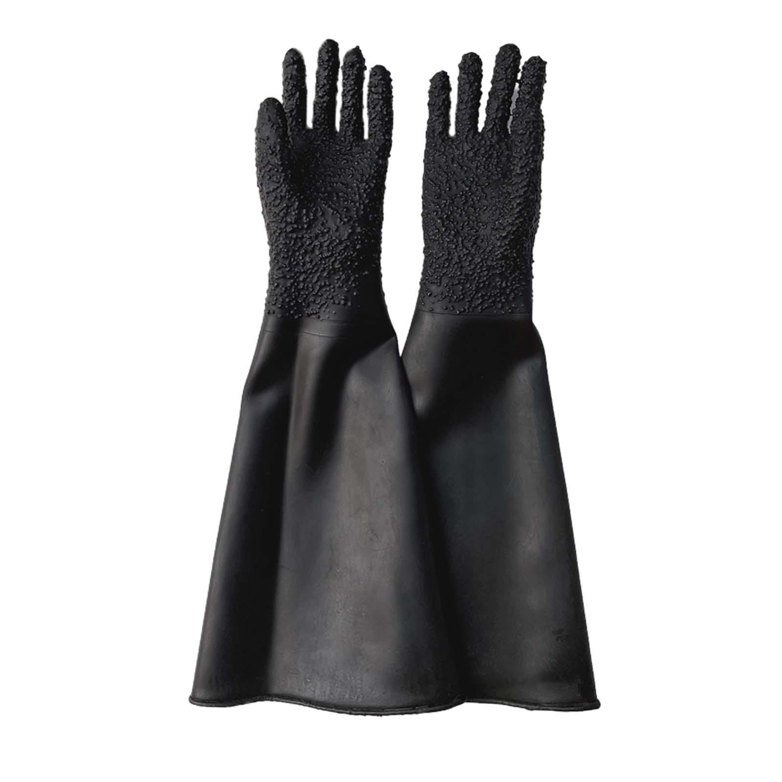 【material premium】: los guantes para chorro de arena están hechos de material de caucho de calidad, que es impermeable, resistente al desgaste y duradero, no es fácil de deformar y se puede usar durante mucho tiempo.