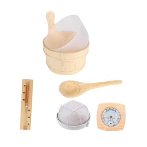 Ioensy - Juego De Cubo Y Cucharón De Madera Para Sauna Medidor De Temperatura Y Humedad Accesorios Para Spa | Lider Electrohogar