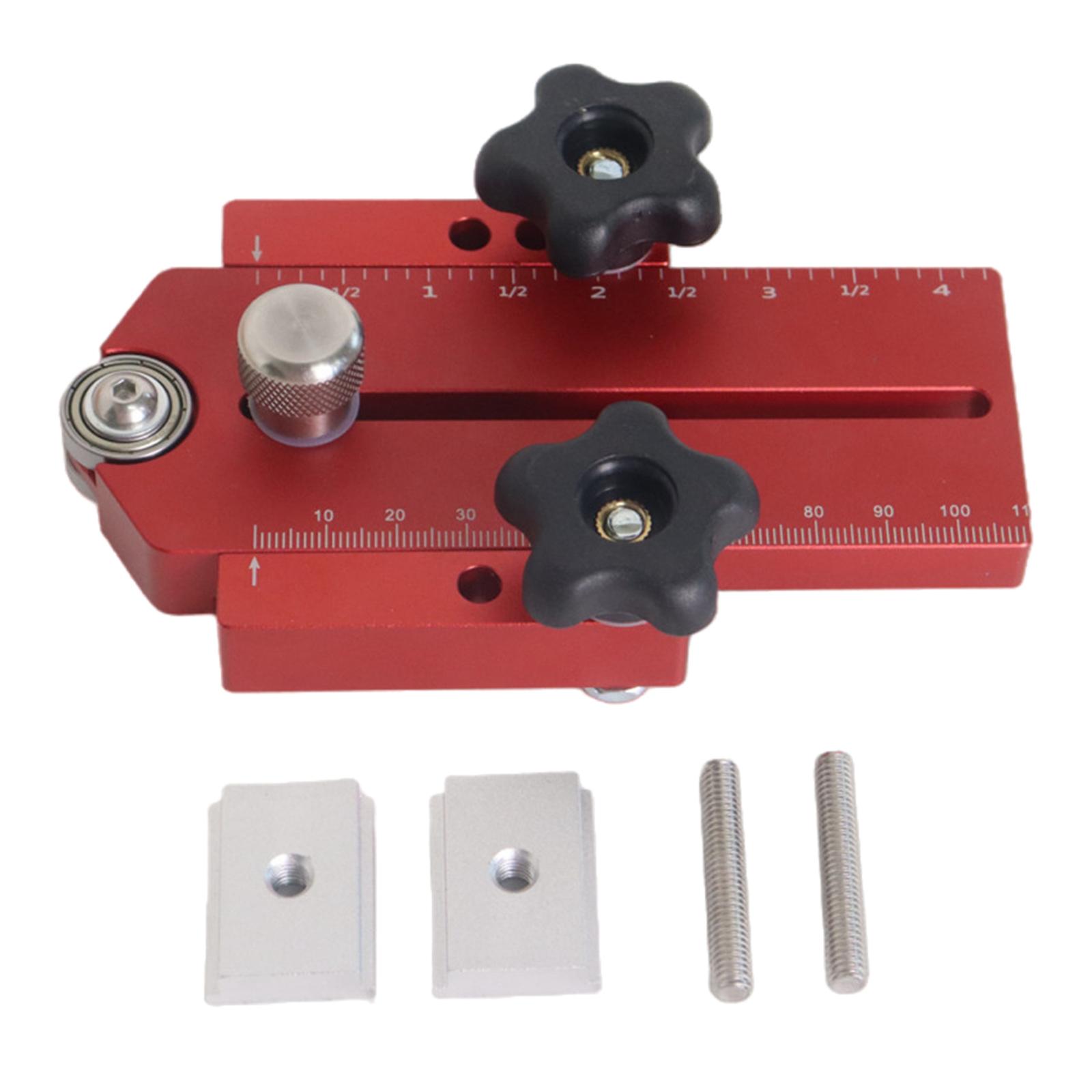 Alta calidad: la herramienta de fijación de posicionamiento de tolva de banco de carpintería está hecha de cuerpo de aleación de aluminio de alta calidad, tapa de tuerca de plástico, rodillo de acero inoxidable y tornillo en t, antioxidante y duradero.