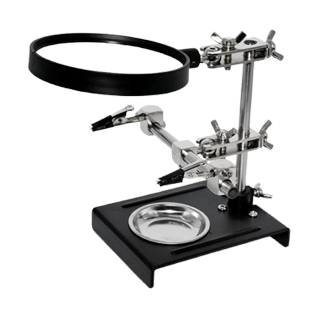 【base de metal resistente】: construida con una base de metal combinada con tubos de soporte de metal, esta mano auxiliar para soldar garantiza un soporte estable para evitar que se deslice o vuelque durante el uso.