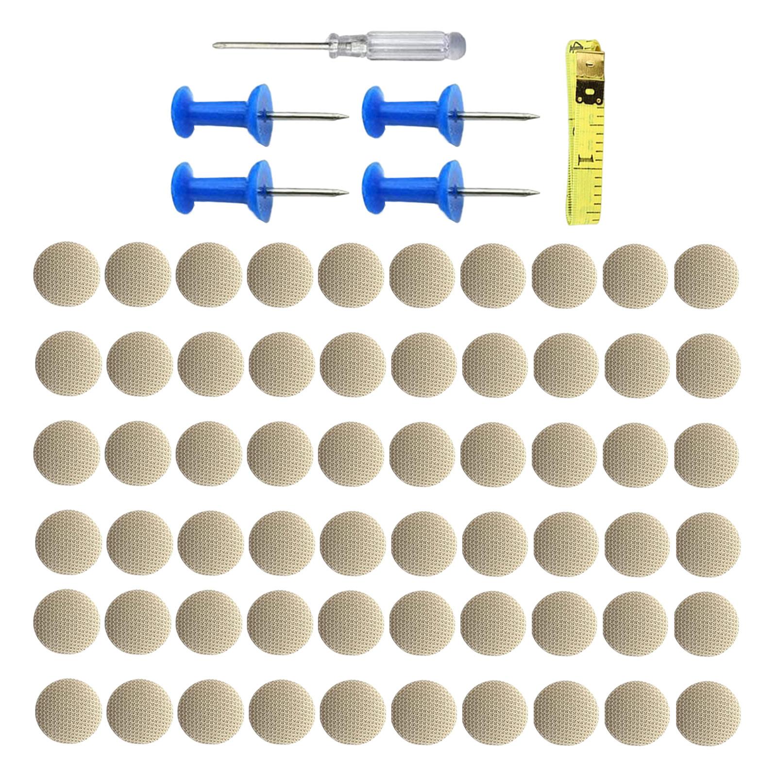 【el paquete incluye】: 60 botones de reparación de techo, 4 pasadores, 1 destornillador y 1 cinta métrica.