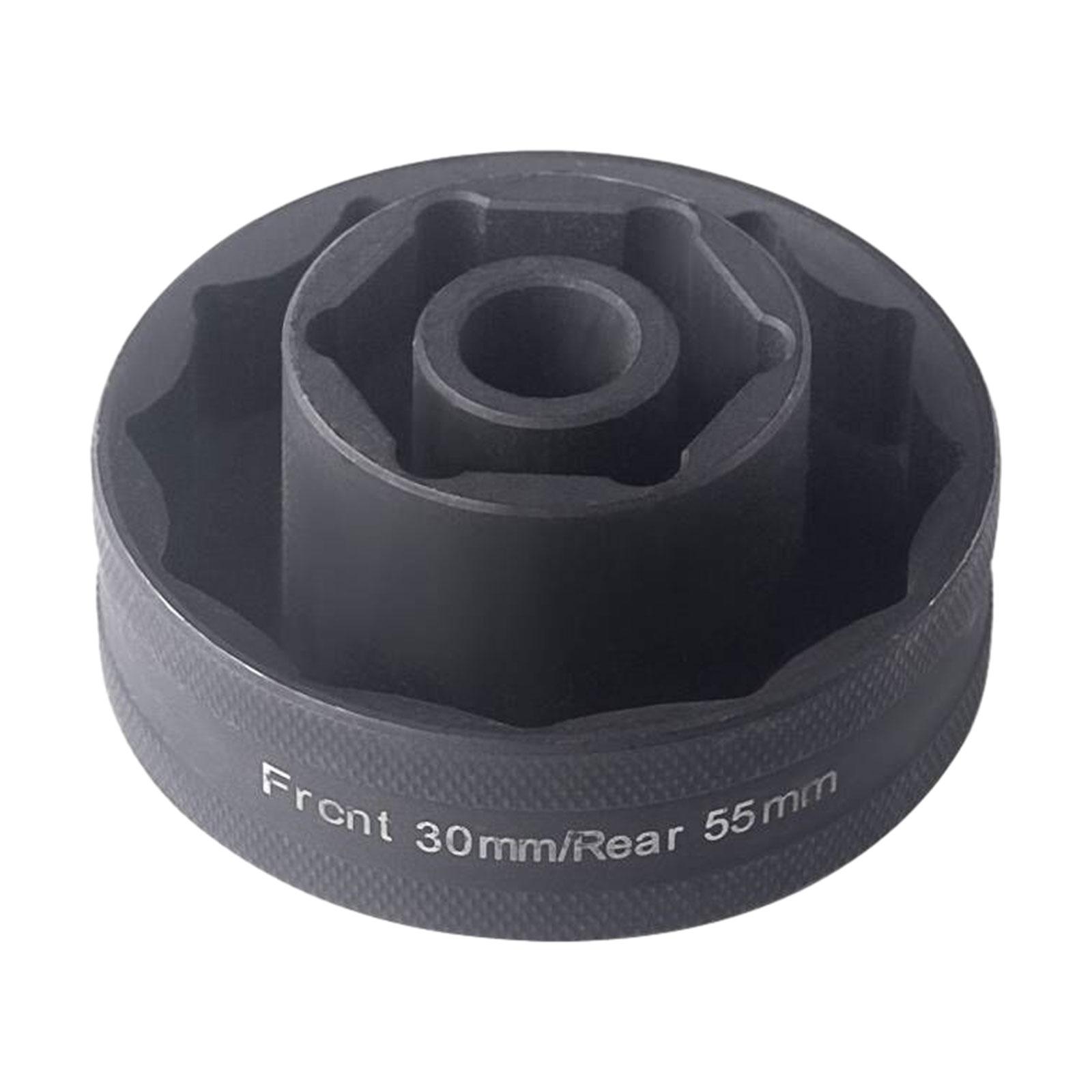 【tipo de producto】: herramienta de vaso para tuercas del eje de la rueda delantera trasera, combina una herramienta de vaso hexagonal doble de 55 mm y una herramienta de vaso hexagonal simple de 30 mm.