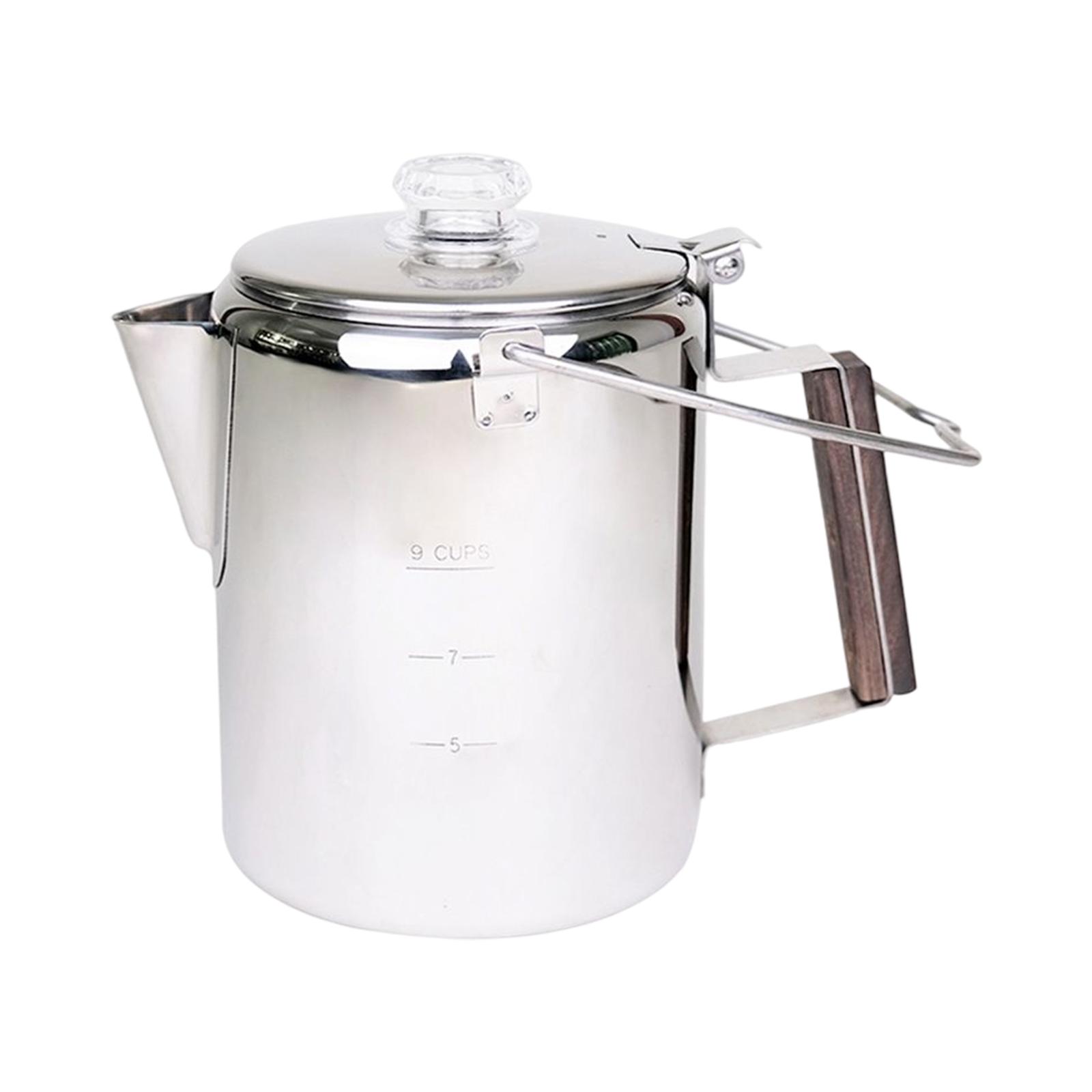 suficiente capacidad: esta cafetera percoladora de 9 tazas produce suficiente café para que todos disfruten. la construcción resistente resiste una estufa de camping, donde puede disfrutar de una taza de café humeante en cualquier momento y en cualquier lugar junto al fuego.