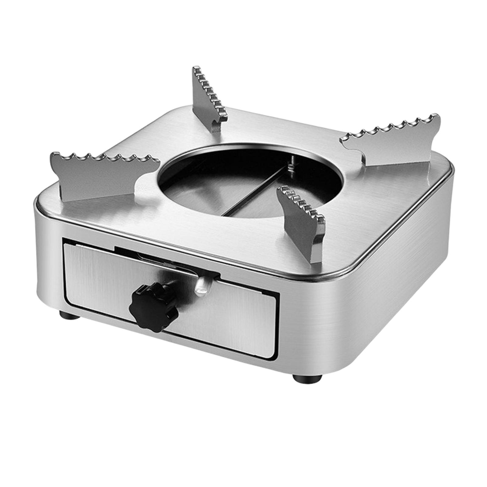 cuerpo de estufa de alcohol integrado, carga estable y pesada, ajustador deslizante, ajuste fácil de la potencia de fuego, estante estable y de fijación y pies de apoyo antideslizantes, seguro de usar