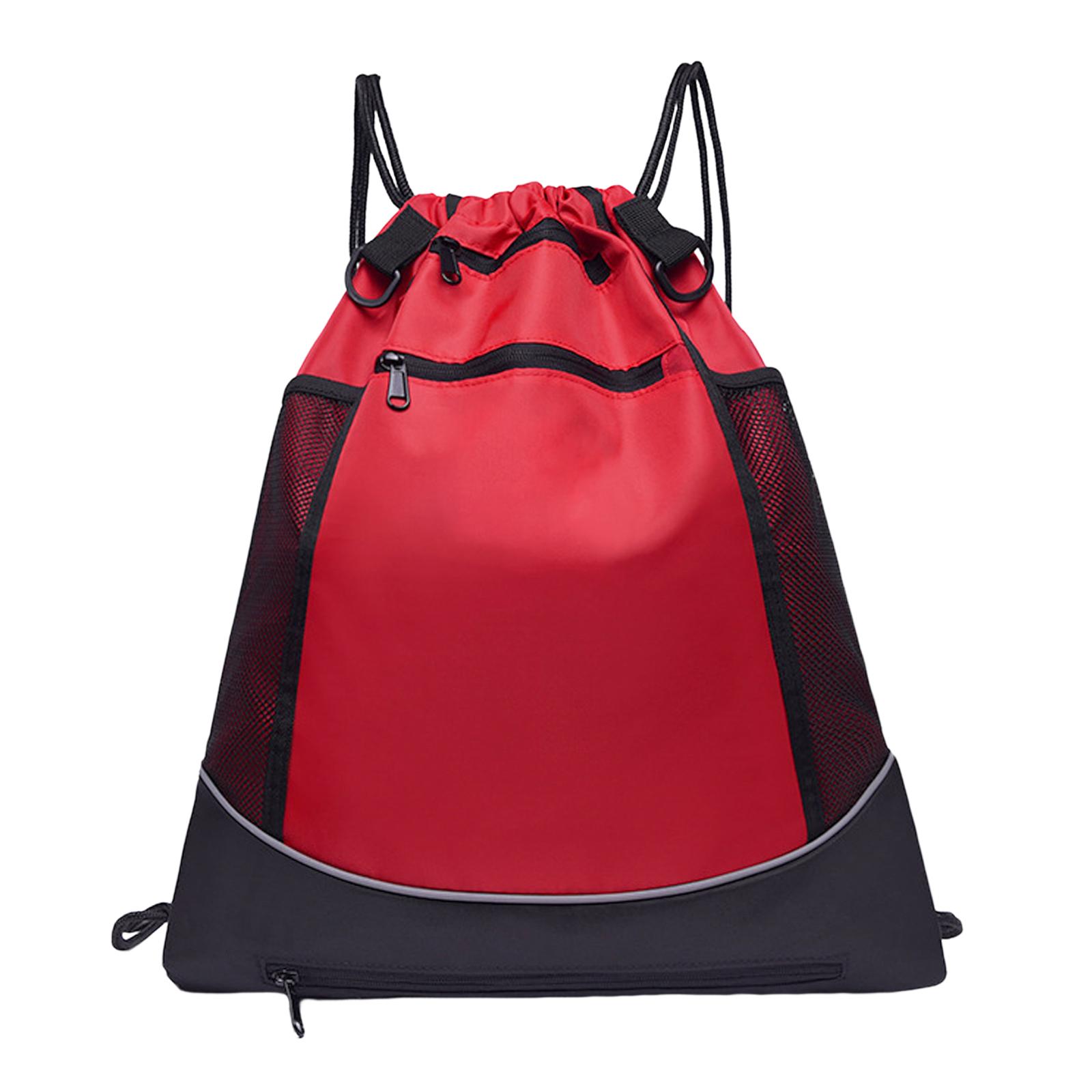 Diseño: la mochila con cordón para el gimnasio tiene bolsillos con cremallera para llaves, gafas de sol, toallas, etc. un bolsillo oculto con cremallera en la parte posterior para guardar teléfonos móviles y billeteras para evitar que se pierdan, y dos bolsillos de malla para botellas de bebidas y paraguas. el bolsillo con cremallera en la parte inferior de la mochila contiene un gran bolsillo de malla, que puede almacenar artículos deportivos como pelotas de baloncesto, fútbol y fútbol, lo que le facilita salir a practicar deportes y viajar.