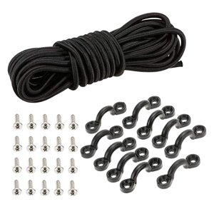 El paquete incluye: kit de aparejos para cubierta de kayak que incluye una cuerda elástica elástica de 5 m/16,4 pies de 4 mm, 10 hebillas en forma de c y 20 tornillos.