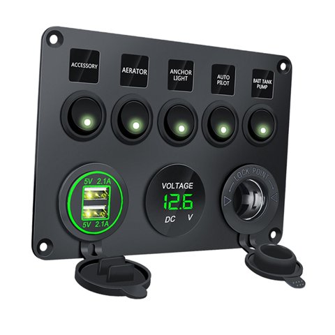 Ioensy - Panel De Interruptor De Barco De 5 Bandas Impermeable Doble Usb Multifunción Luz Verde