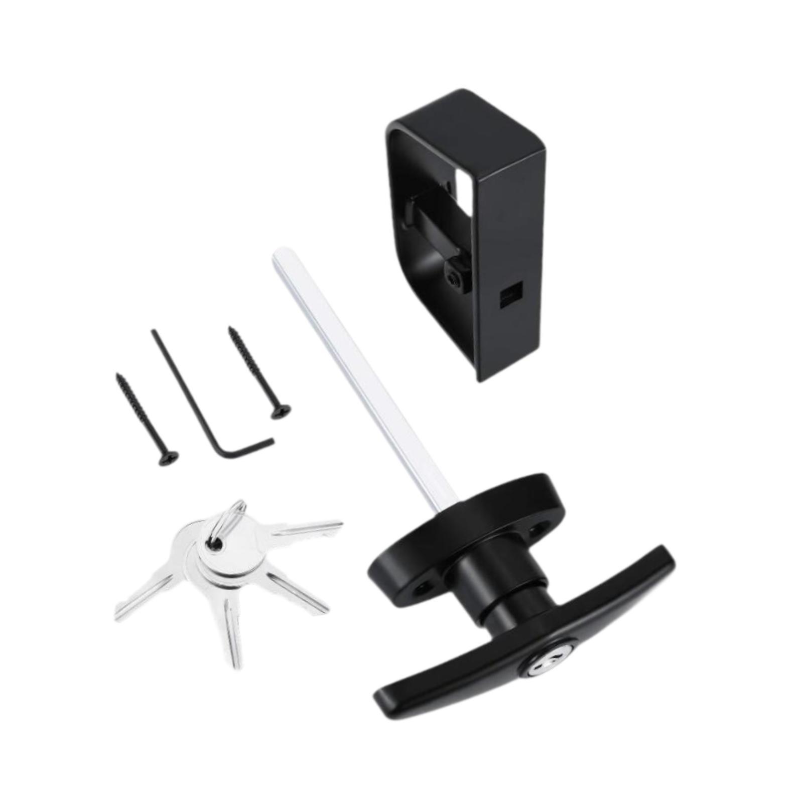 【kit de herrajes para puerta de cobertizo】viene con cerradura exterior en manija en t, manija interior en d y 4 llaves, 2 tornillos, 1 llave hexagonal