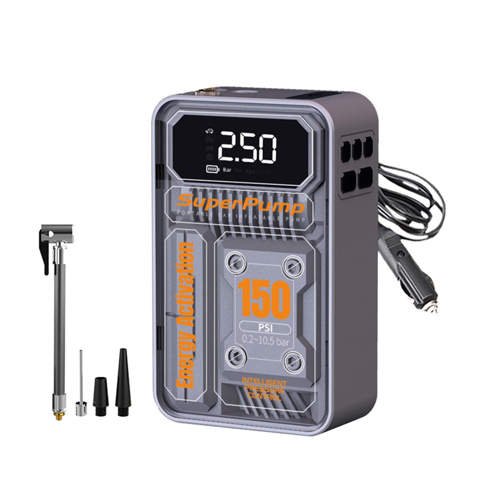 【material de calidad】: bomba inflable para neumáticos de automóviles hecha de pp y material de aleación, motor de bobina de cobre puro, bajo nivel de ruido, inflado más rápido.