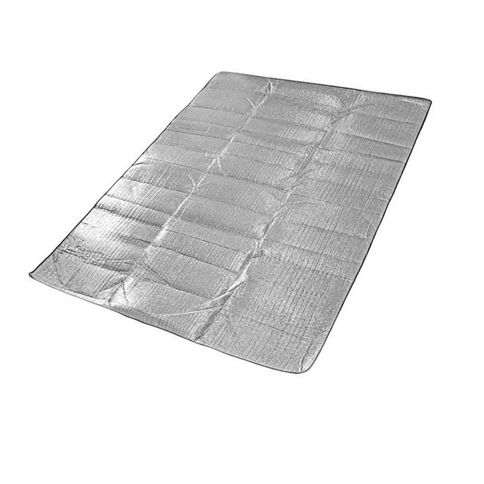 Características: tapete de aluminio de doble cara a prueba de humedad, tapete para tienda de campaña, papel de aluminio engrosado para playa al aire libre para picnic y camping.