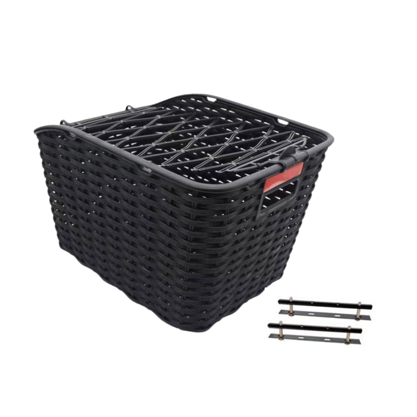 【características】 esta canasta de almacenamiento de bicicletas está bien en mano de obra, marco engrosado y no es fácil de deformarse, es un diseño de portada, que no caerán de la canasta