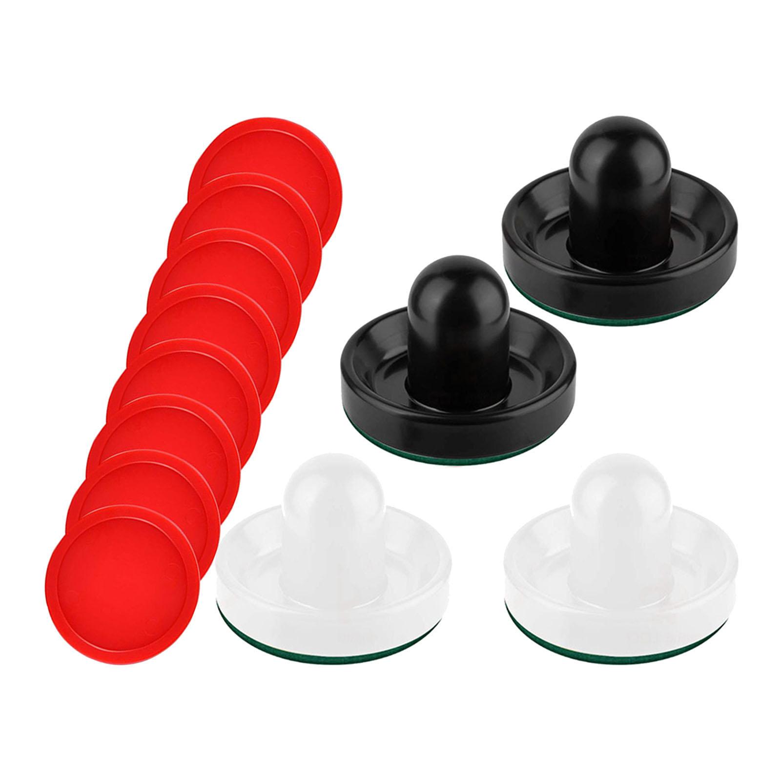 tamaño: los empujadores miden aproximadamente 3,78 x 2,36 pulgadas y los discos miden aproximadamente 2,52 pulgadas, se adaptan a la mayoría de las mesas de air hockey estándar.