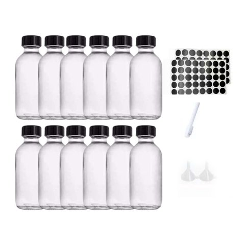 Magideal - 12 Mini Botellas De Vidrio Vacías, Redondas, Con Tapas, Embudos Y Etiquetas. Vidrio Grueso A Prueba De Fugas, Ideales Para Cuidado Personal, Hogar Y V 12 Piezas De 2 Oz | Lider Electrohogar