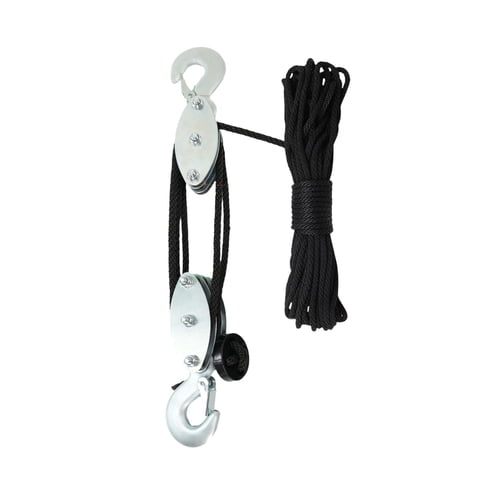 Ioensy - Polea De Polipasto De Cuerda Polea De Cuerda Sistema De Aparejos Y Bloque De Ruedas De Polipasto Polea De Elevación 4 Ruedas 20M Negro