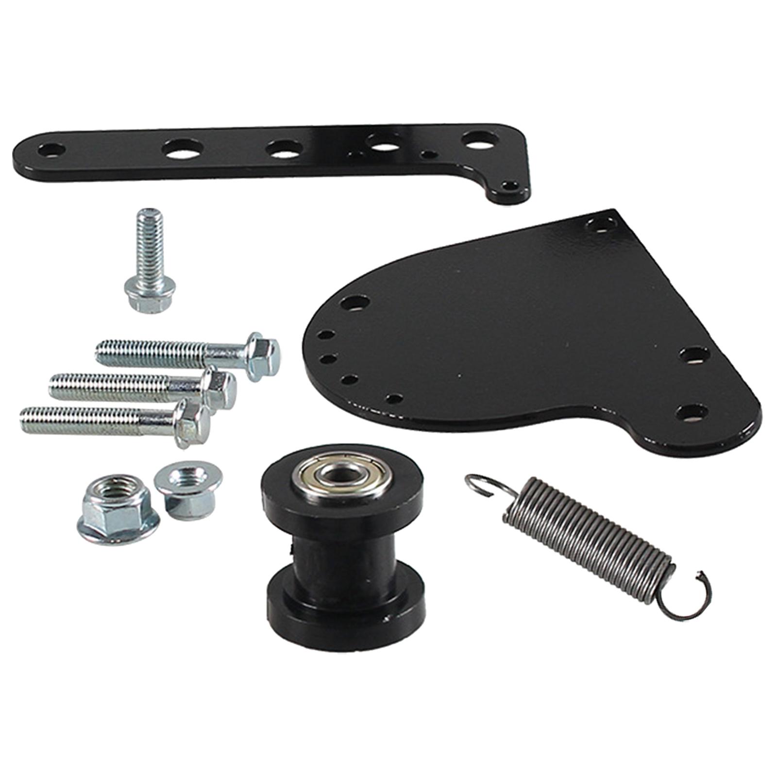 el paquete incluye: un juego de tensor de cadena de bicicleta motorizado (un rodillo de tensión, un resorte, dos placas estructurales de metal, 4 tornillos, 2 tuercas)