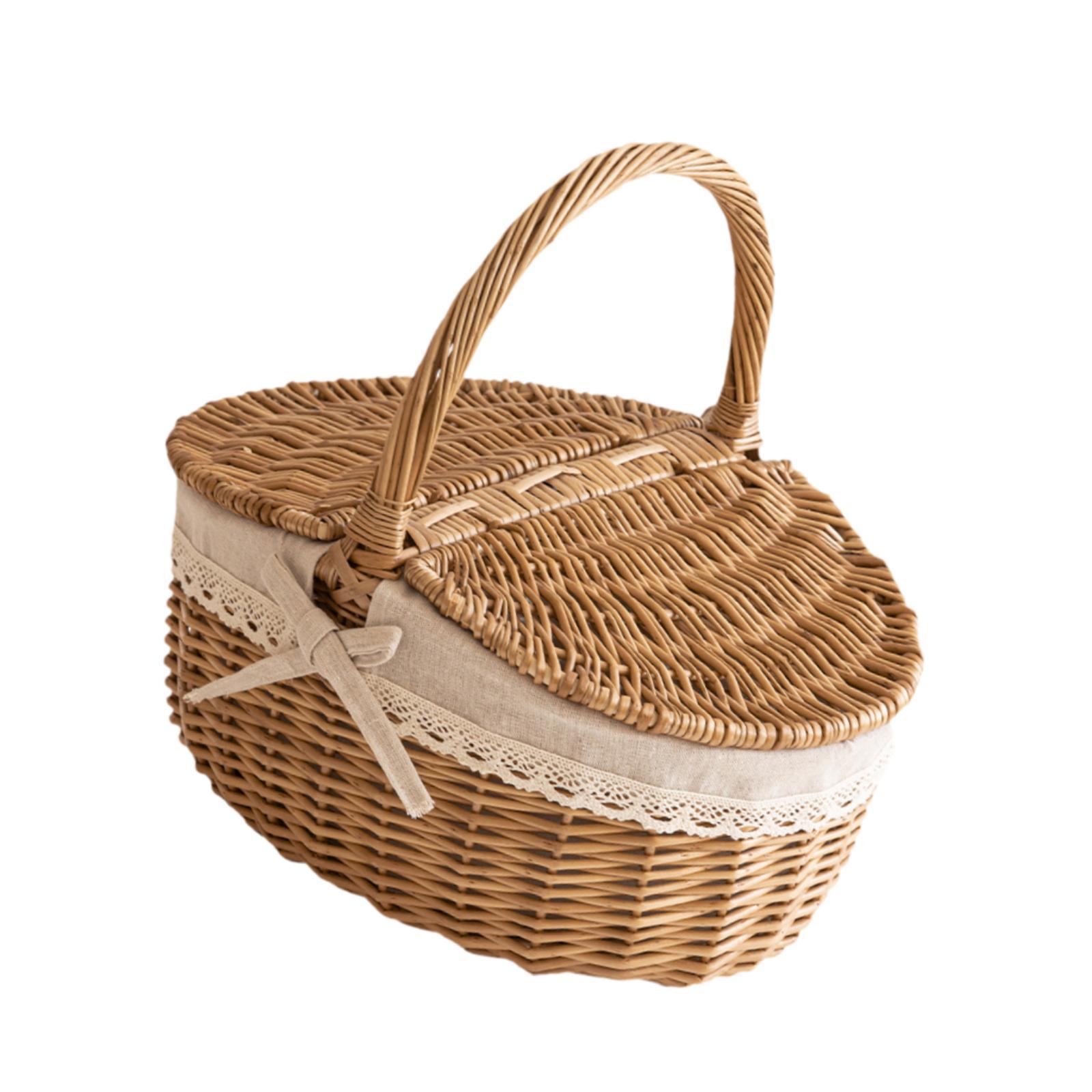 【cesta de almacenamiento portátil tejida de mimbre pastoral】: cesta de picnic al aire libre con forro extraíble con tapa