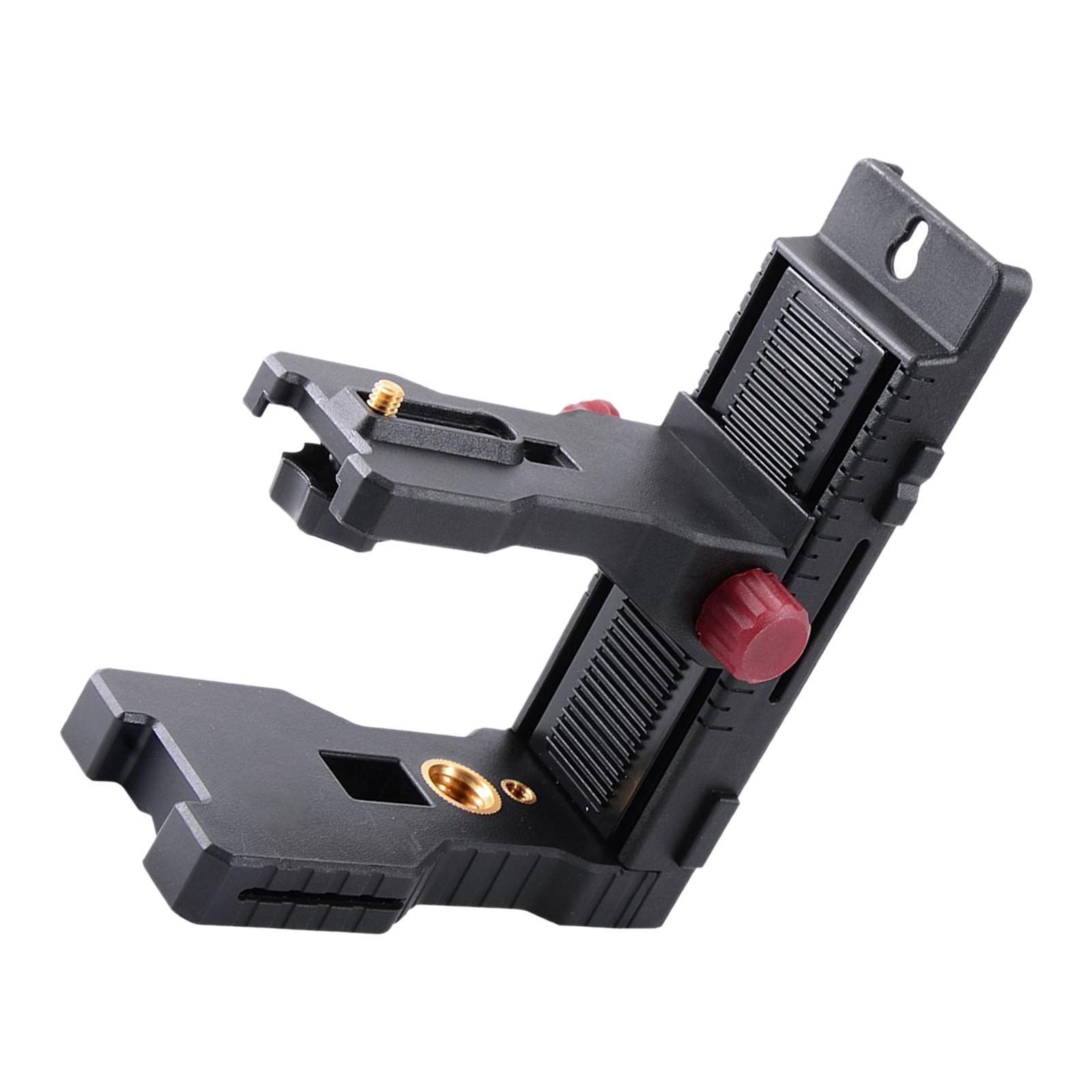 varias maneras fijas: el soporte de nivel láser con imanes potentes para una fijación conveniente a montantes metálicos, se puede asegurar en el panel de yeso con clavos o tornillos por su orificio superior y también se puede usar junto con un poste telescópico profesional.