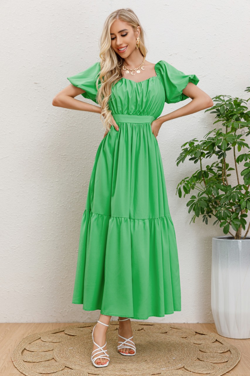 Likeshop - Vestido Largo Mujer Manga Globo Corta Cuello V 3345 | Lider Electrohogar