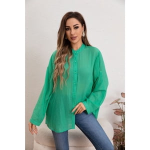 Likeshop - Blusa Mujer Lino Algodón Premium Liviana Manga Larga Cuello Mao 8055 | Lider Electrohogar
