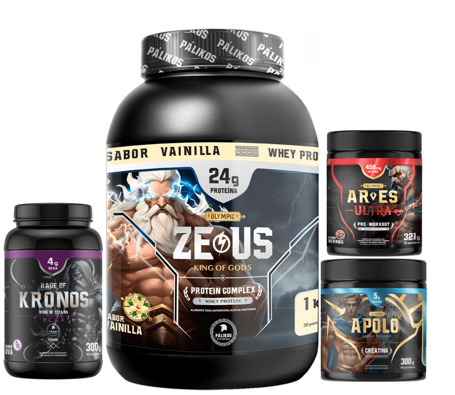 Palikos Fitness - Proteina Zeus Complex 1Kg Vainilla + Creatina Apolo 300G + Shaker