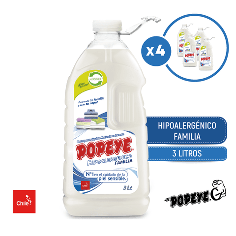 Pack 4 X Detergente Hipoalergénico Popeye Familia Matic Pet 3 Lt | Lider Electrohogar