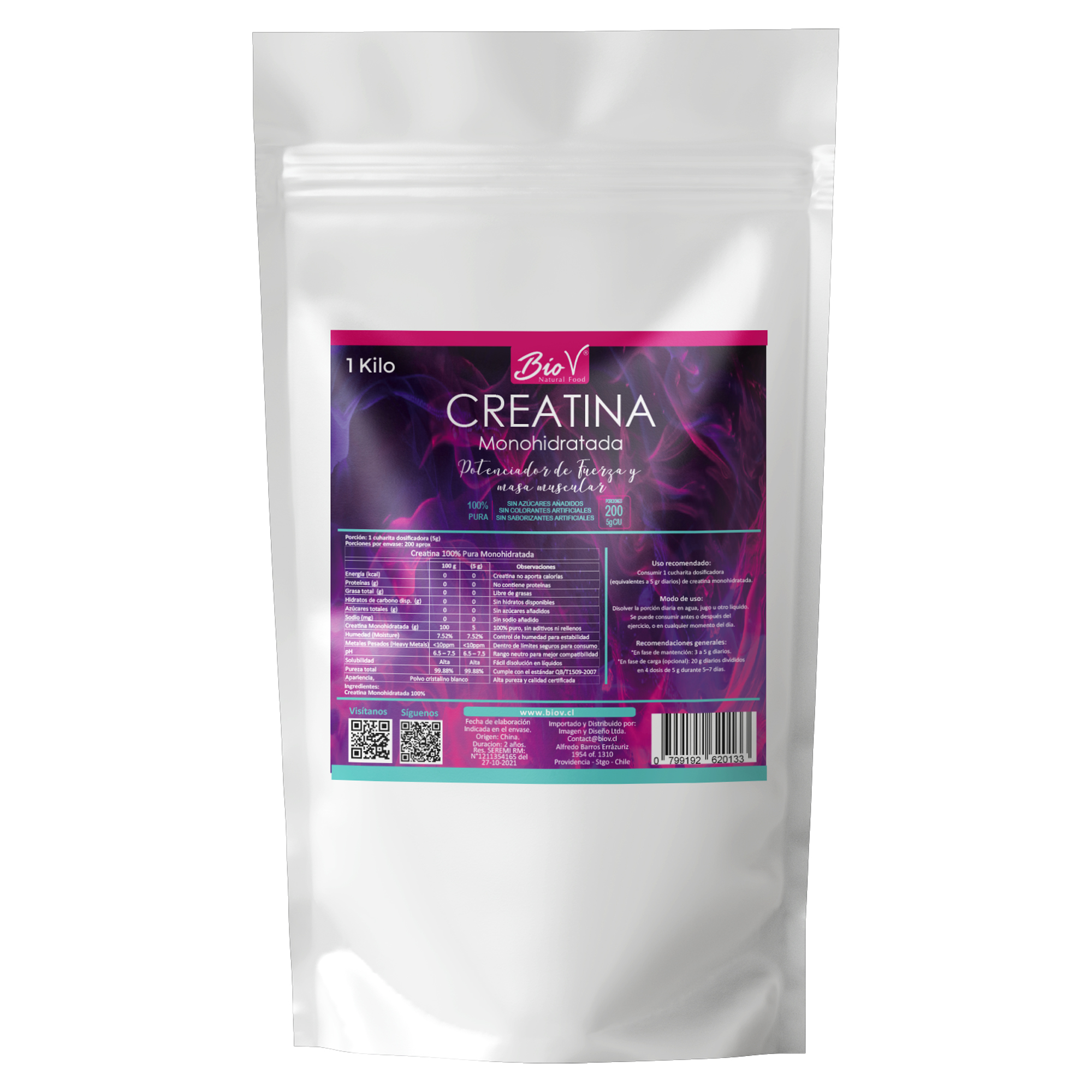 Biov - Creatina Monohidratada Suplemento En Polvo Puro 1Kg Bio V Sin Sabor | Lider Electrohogar