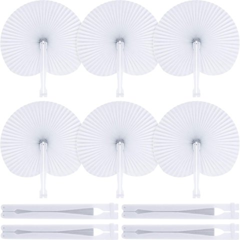 Ventiladores De Papel Portátiles Plegables Bestage, 60 Unidades, Blancos Con Mango De Plástico