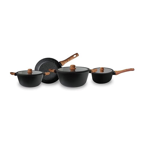 BATERIA DE COCINA ANTIADHERENTE GRANITE LINE 7 PCS NEGRO