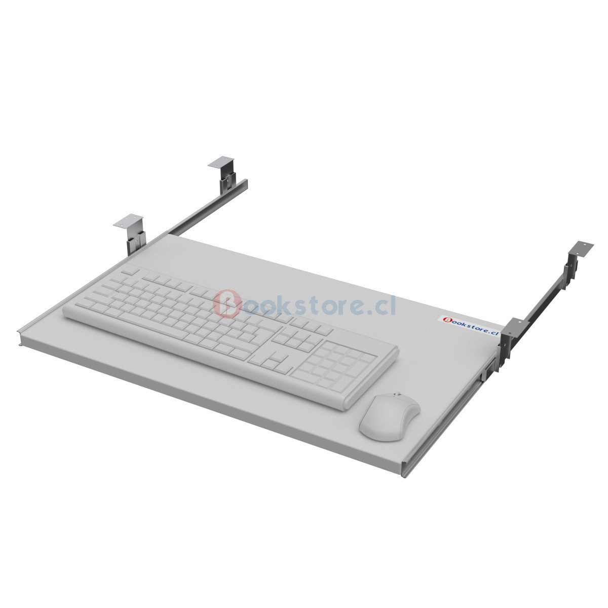 Portateclado de melamina en color blanco, ideal para mejorar la ergonomía y liberar espacio en tu escritorio. se instala fácilmente con los rieles, escuadras y tornillos incluidos, permitiendo una postura correcta y reduciendo la tensión muscular.